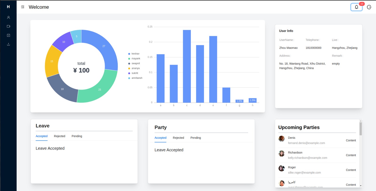 In party module the use can apply for the party and also ask for the party to the rest of the user and can view all the data related to it on user dashboard